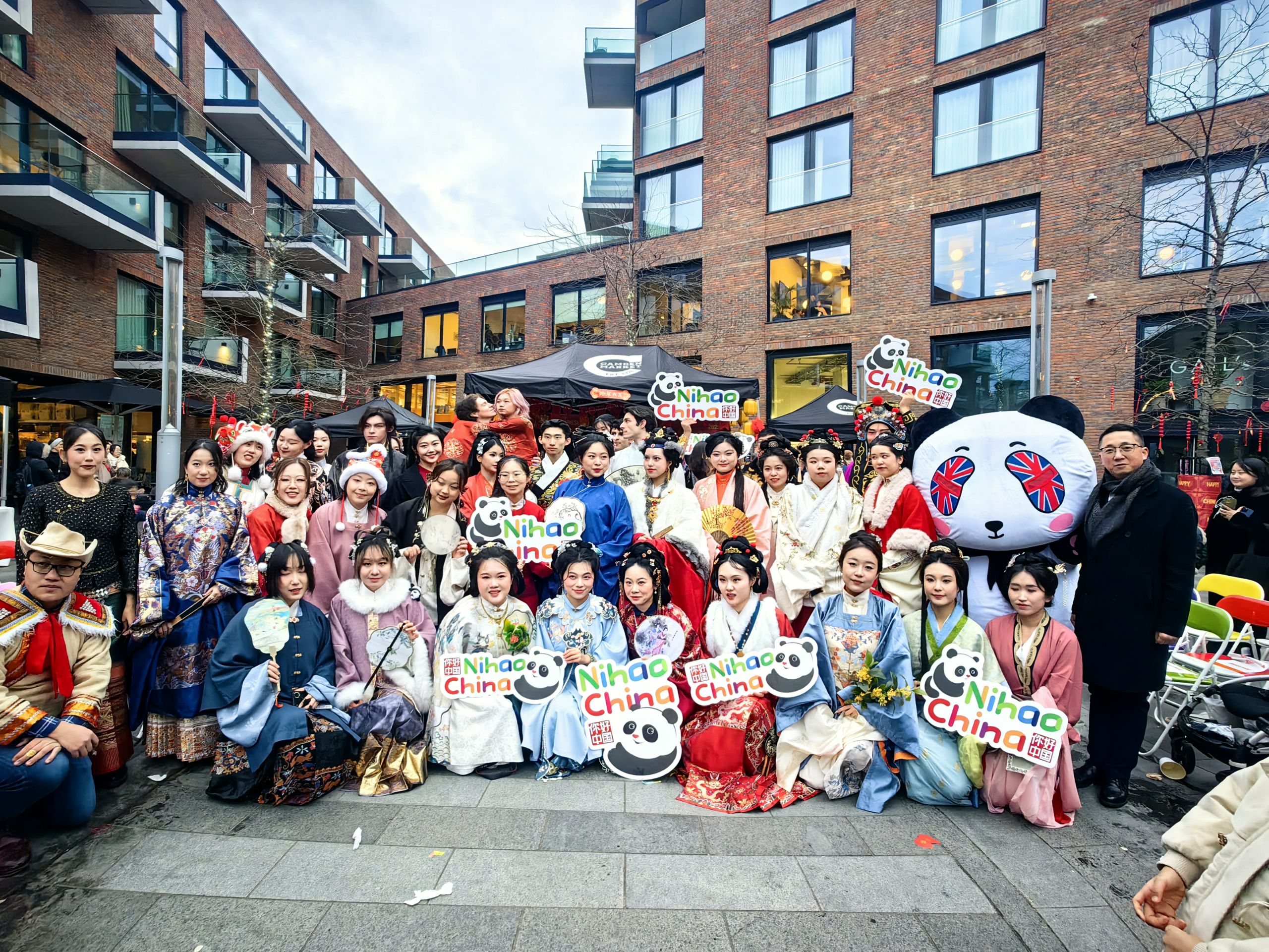 At the end of the event, dozens of young people, both Chinese and international, dressed in traditional Hanfu and ethnic minority costumes, paraded through Camden Market holding “Nihao! China” signs. Their flowing garments resembled a living Chinese painting, captivating countless visitors who stopped to take photos and immerse themselves in the profound heritage of Chinese culture.