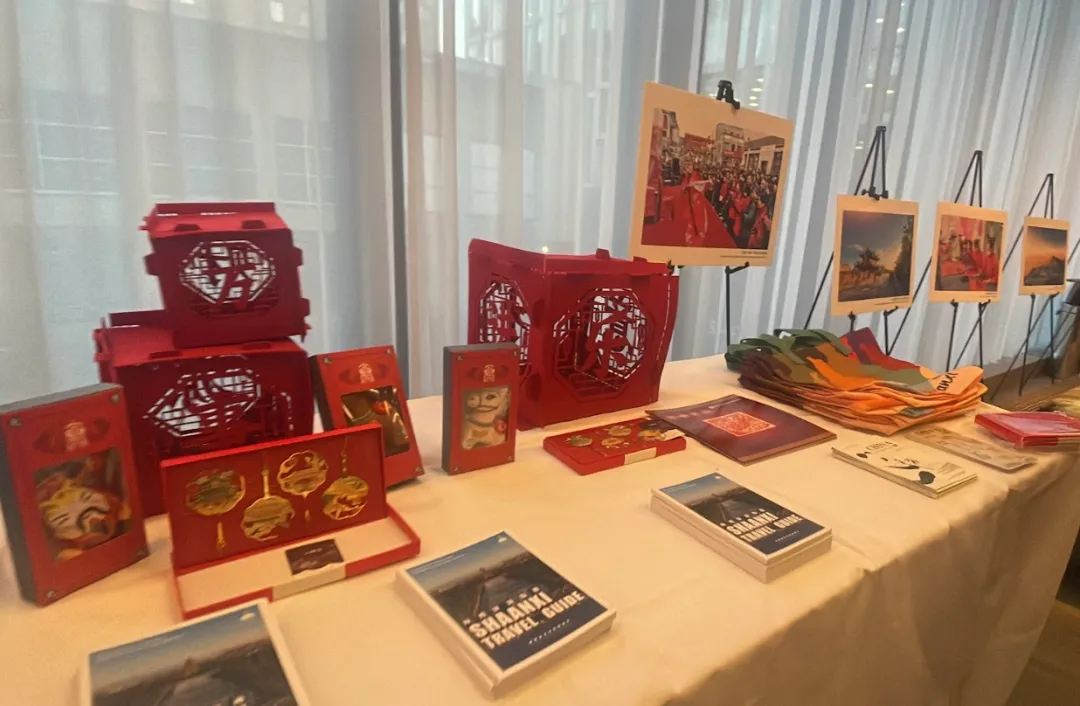 The venue was decorated with traditional Chinese festival elements, where red lanterns and the character ‘Fu’ (fortune) beautifully complemented each other. Chinese intangible cultural heritage artworks, such as Shaanxi paper cuttings and hand-embroidered auspicious horse-shaped scented sachets, attracted guests to stop and admire. Over 20 photographs showcasing China’s magnificent landscapes formed the ‘Nihao! China’ photo exhibition surrounding the hall, allowing attendees to immersively experience the unique charm of Chinese culture and tourism.